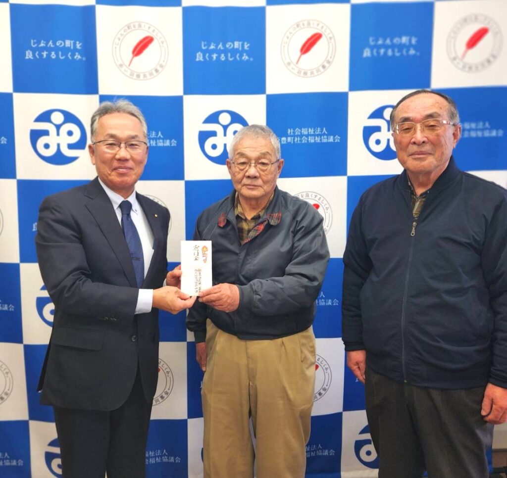 2025.12.16お知らせ 飯豊中第二回卒業西部地区同級会一同様から寄付金をいただきました。 飯豊中学校第二回卒業生の西部地区同級会が先日開催され、 資金の一部を地元の社会福祉の向上のために役立ててもらいたいとの思いで、 本会に寄付金をお持ちいただきました。 皆さまの意志に応えられる活動を常に考え、そして実践していきます。 我が社協は皆さまの善意で成り立っていることに役職員一同心から感謝申し上げます。